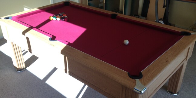 And so Aucklanders are moving out. Not to get too political but we have noticed that heaps of our recent installations outside of Auckland, have been to customers who have recently moved out of Auckland. It seems to be a general trend that people who have made some money on their house have cashed up, moved out and grabbed themselves are larger property elsewhere - a perfect opportunity to buy a pool table, I hear you say. This one is the Westminster Pool Table in Oak and Burgundy.