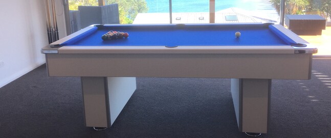 Right now, we have most models and colours available for immediate delivery. This one, the Richmond Pool Table in white and blue, was self installed by our customer just this last week. It took him about 45 minutes from start to finish saving him the transport and installation fee. That's more money for beersies!