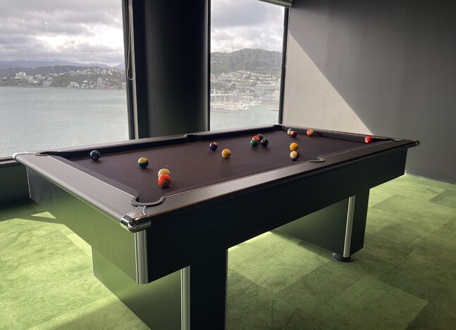 Not the most difficult pool table installation that we have ever carried out but definitely in the Top 10. This is Richmond Pool Table in black and black napped cloth. We delivered this beauty to Wellington a couple of weeks back. Not a bad view, eh?