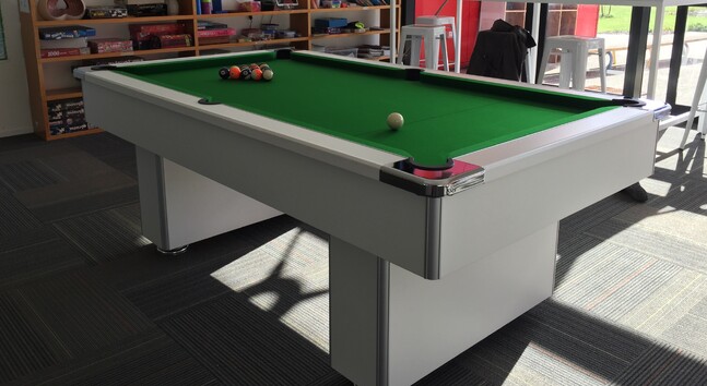 This pool table costs just $2750 which includes GST and a full set of accessories. Unlike some of the low priced pool tables here in New Zealand, it is a slate bed pool table. This makes it a commercial grade, robust piece of kit, weighing upwards of 200kg. Subject to some TLC over the forthcoming years, this table will last decades. Find Out More.