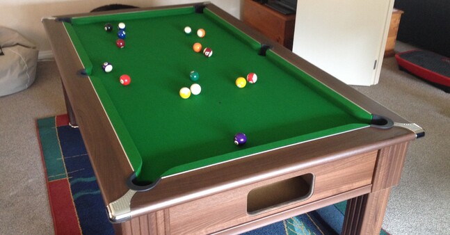 The Westminster Pool Table is a slate bed pool table, with Strachan 6811 napped cloth and a full set of accessories - Just $2750 - Want One?