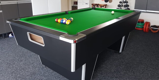 This is the City Pool Table in Black and Green with Strachan 6811 Cloth and a full set of accessories. It is a UK specification, 7ft Pool Table and is priced at just $2750. Place your order now for a Pre- Christmas delivery.