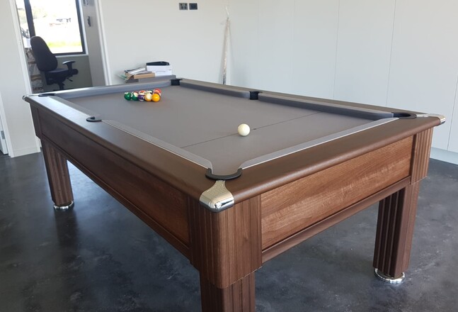 This is the Westminster Pool Table in Dark Walnut and Grey. It's a 7ft slate bed pool table supplied in either dark walnut or oak colour and with a full set of accessories. The price is just $2750.