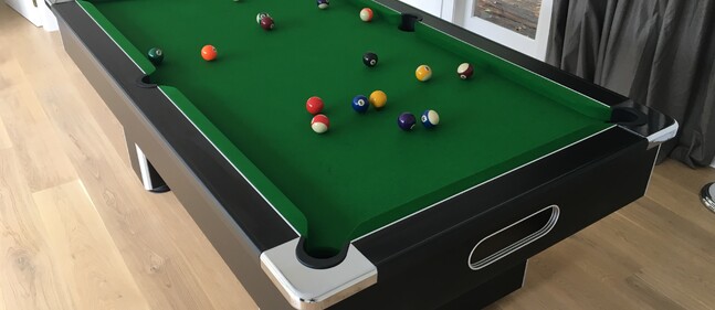 This is the Richmond Pool Table in Black and Green. It's a 7ft slate bed pool table with Strachan 6811 cloth and a full set of accessories included in the price of just $2750. We can deliver and install in Auckland for just $295 or ship to both islands for easy customer self installation - we need your address to confirm pricing. Keen to know more ? Call us on 09 444 6838 and we can tell you which cloth colours and table finishes are available. Thanks.