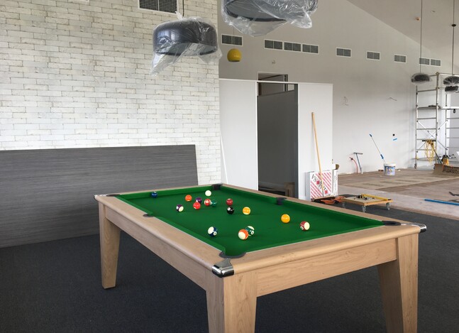This is the Chelsea Pool Table Diner in Light Oak and Green. It has a slate bed, is supplied with a two piece table top and allows for leg clearance underneath meaning that it doubles up as a meeting table or dining table. The Chelsea Pool Table Diner is also available in black, white, oak, dark walnut and driftwood with a wide choice of cloth colours too. Want to know more? Call 09 444 6838 to view.