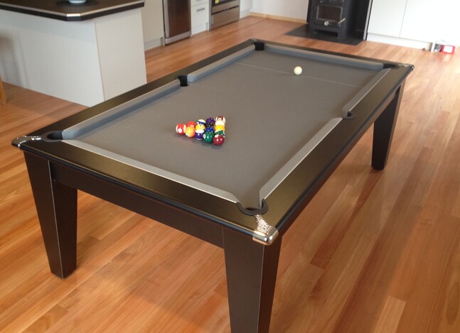 This is New Zealand's lowest priced, slate bed, pool table diner at just $3750 with a full set of accessories and a two piece dining top included in the price. We have 4 different body colour options available and 8 different cloth colours too. Make you move now to ensure a pre-Christmas delivery. Merry Christmas.....