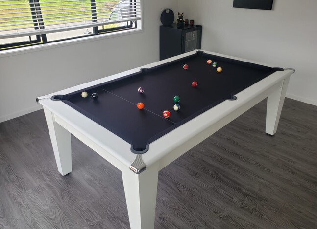 The Chelsea Pool Table Diner is available in white, black, dark walnut, driftwood and oak with your choice of cloth colour from green, blue, red, burgundy, black, grey, purple or taupe.