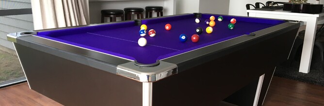 This is the City Pool Table in Black and Purple. It's a 7ft slate bed pool table with Strachan 6811 cloth. The price is just $2750 which includes a full set of accessories. We can deliver and install in Auckland for just $295 or ship to both islands for easy customer self in...