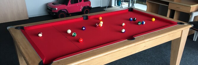 If you have house or office where space is at a premium, consider swapping out your meeting room table or dining table for this dual purpose pool table. It is supplied with a two piece diniing top and you can go from eating your sprouts or discussing last years profit and lo...