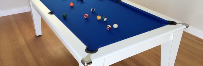 The is the Chelsea Pool Table Diner in White and Blue. It's the least expensive pool table diner in New Zealand and yet it boasts a slate bed, Strachan 6811 tournament cloth, a full accessory pack and a two piece dining top too (not shown). Choose your favourite colour...