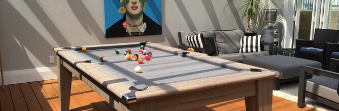 The Chelsea Pool Table Diner is the most popular pool table diner in New Zealand. It is available in black, white, light oak, oak, dark walnut and, for a limited time, driftwood - see picture. The table comes with a free two piece dining top and a full set of accessories. Ge...