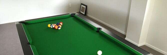 This is a recent installation of our Chelsea Pool Table Diner in Tauranga, Bay Of Plenty - it's dark walnut with purple cloth. The Chelsea Pool Table Diner is proving really popular with domestic and commercial customers alike and, at just $3500 with a free accessory pack, w...