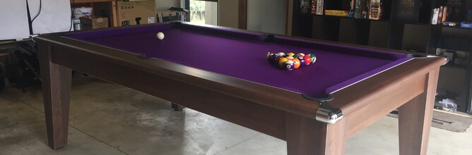 This is a recent installation of our Chelsea Pool Table Diner in Tauranga, Bay Of Plenty - it's dark walnut with purple cloth. The Chelsea Pool Table Diner is proving really popular with domestic and commercial customers alike and, at just $3500 with a free accessory pack, w...